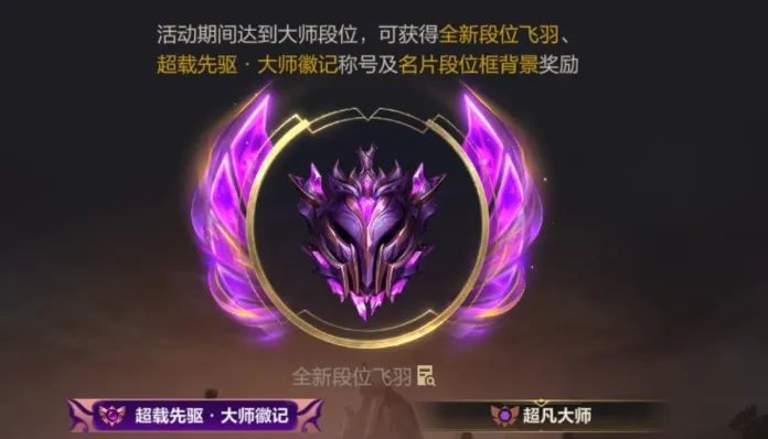赛季初冲刺专属奖励来袭!截止至5月18日23:59,召唤师达到超凡大师段位即可获得全新段位飞羽、称号-超载先驱·大师徽记及名片段位框背景奖励~