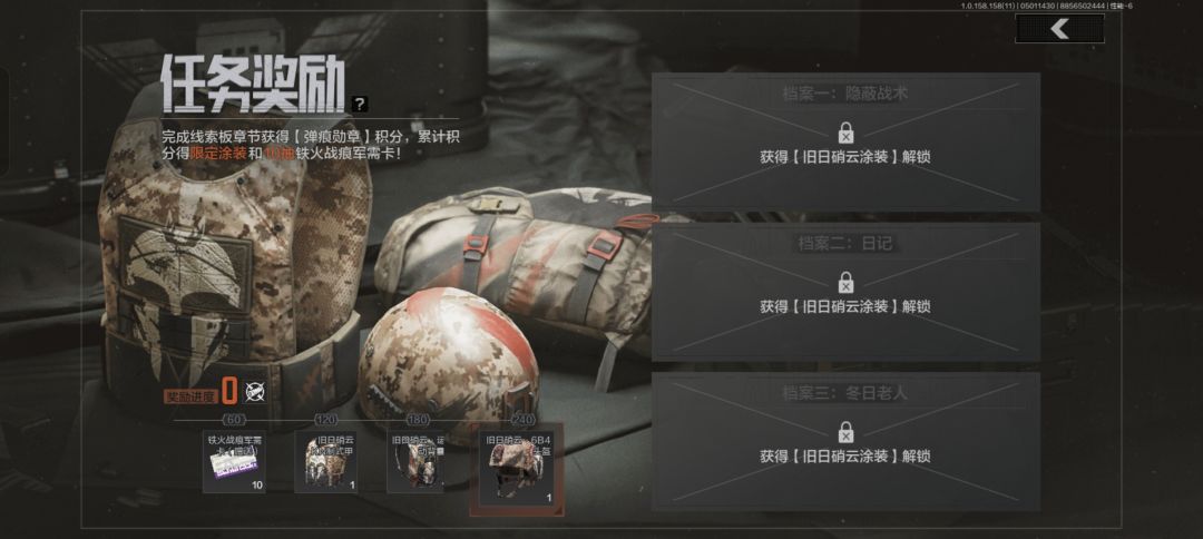 活动奖励:铁火战痕军需卡*10、旧日硝云·KN制式甲、旧日硝云·运动背囊、旧日硝云·6B4头盔