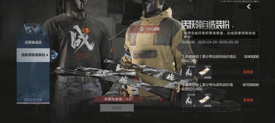 每周完成任务积累战意值,达成进度还能领自选装扮,福利满满,五一假期战个痛快!