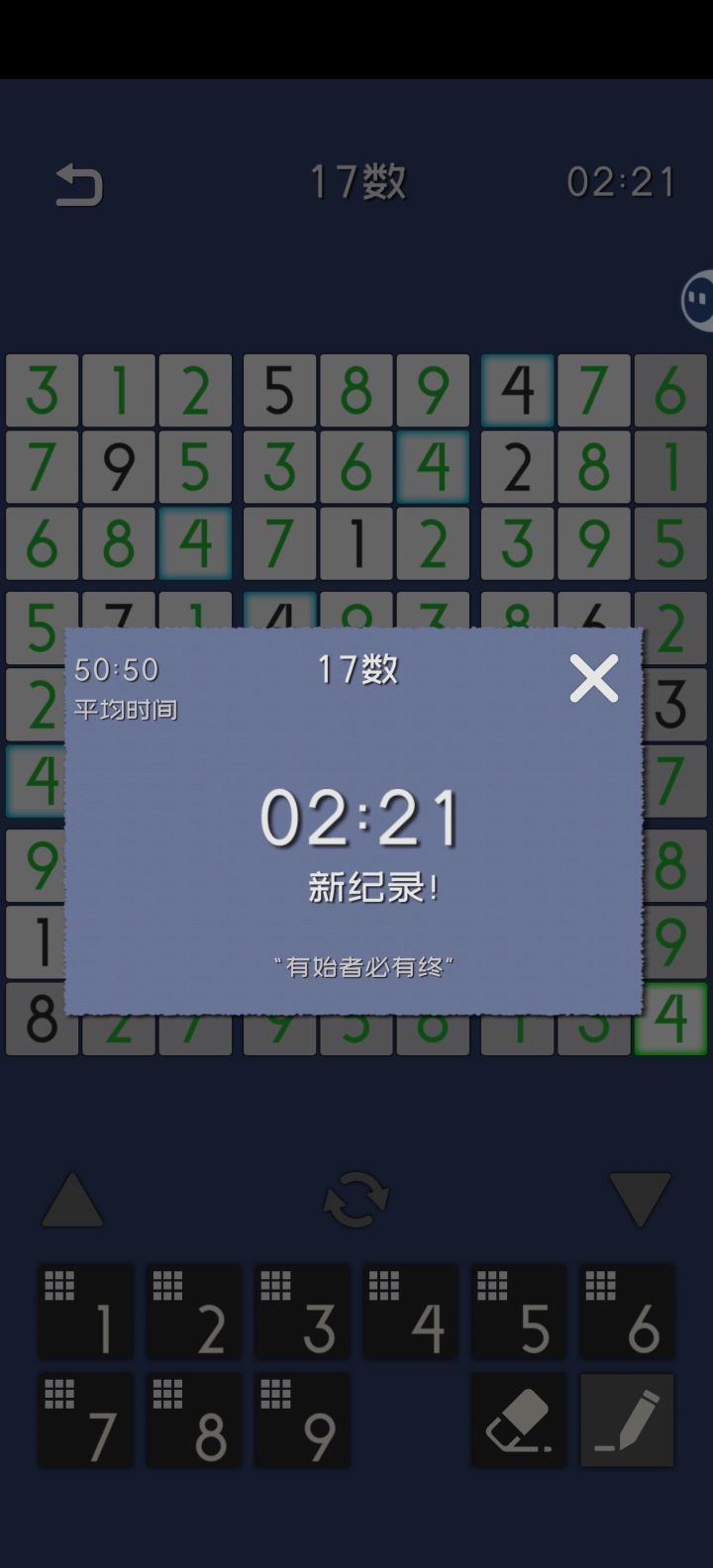 先开一局,然后截图立马退,游戏的计时会暂停,然后把截到的抄在纸上,最后在纸上做完再把纸上的答案抄在游戏里,手速快点估计时间可以不超一分钟
