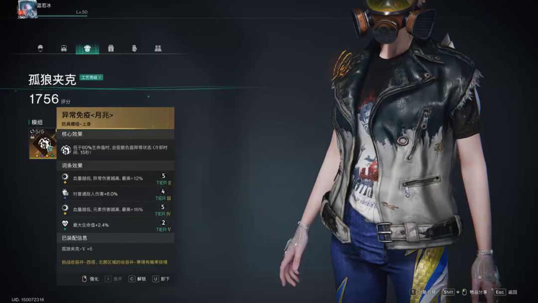 上面裤子和手套元素和异常的选择其实很简单,一般穿黑石的都会选择异常类的加成,因为黑石衣服给的元素伤害很多,而末土刚好相反,异常给的多,所以一般穿末土都选择元素加成的模组。