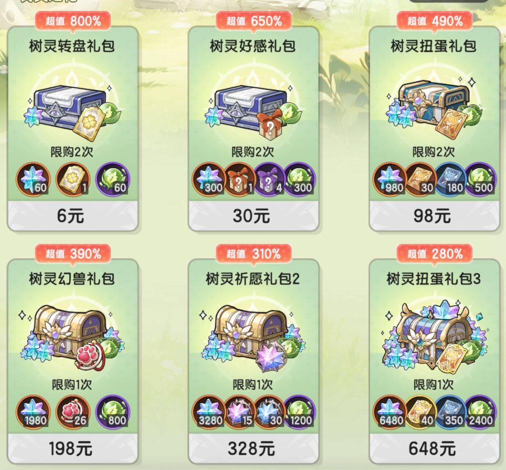 (我这里也是考虑每个档位最低情况,如果在某档位预算足够,可以适当补未推荐的其他礼包)