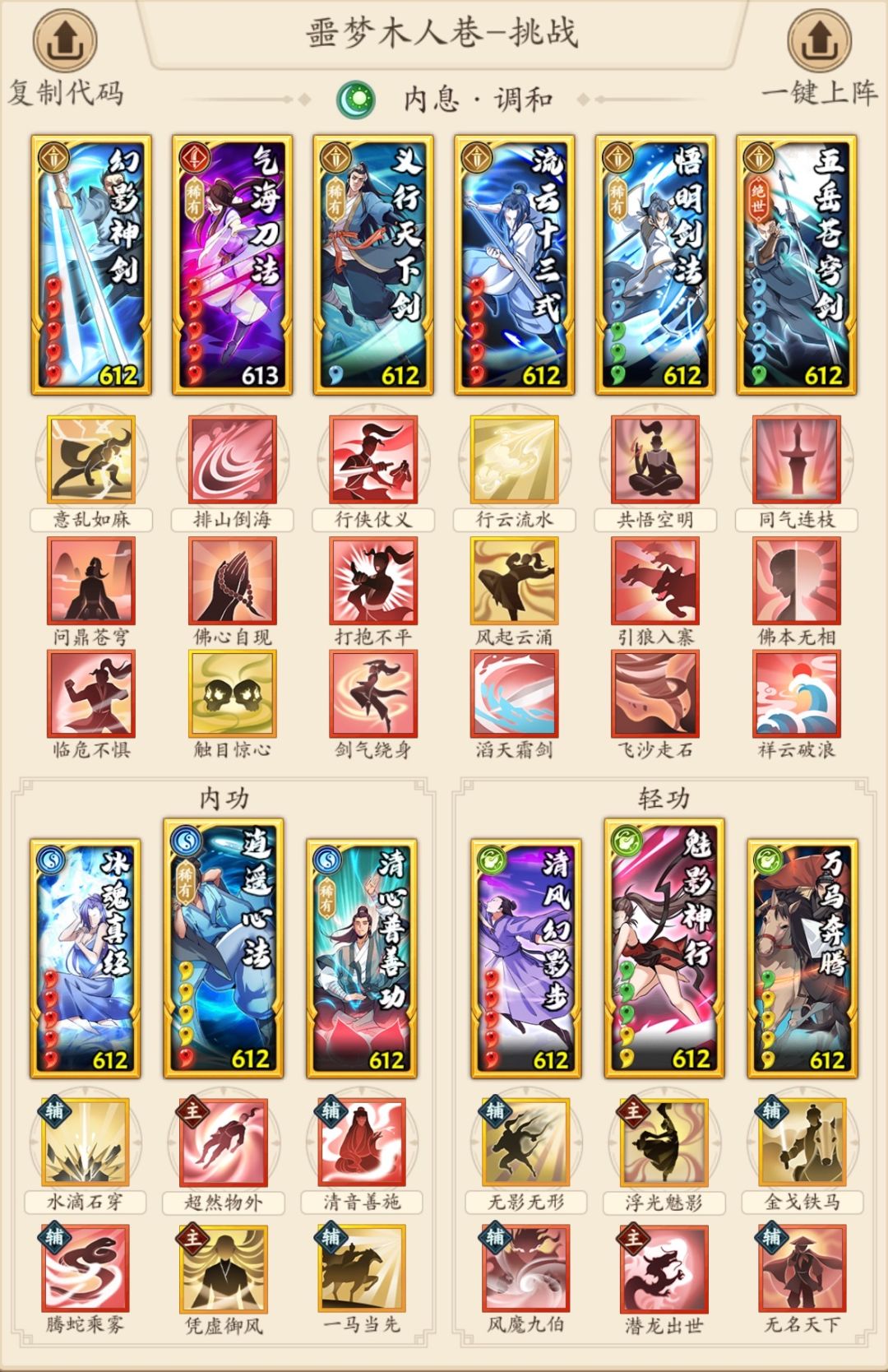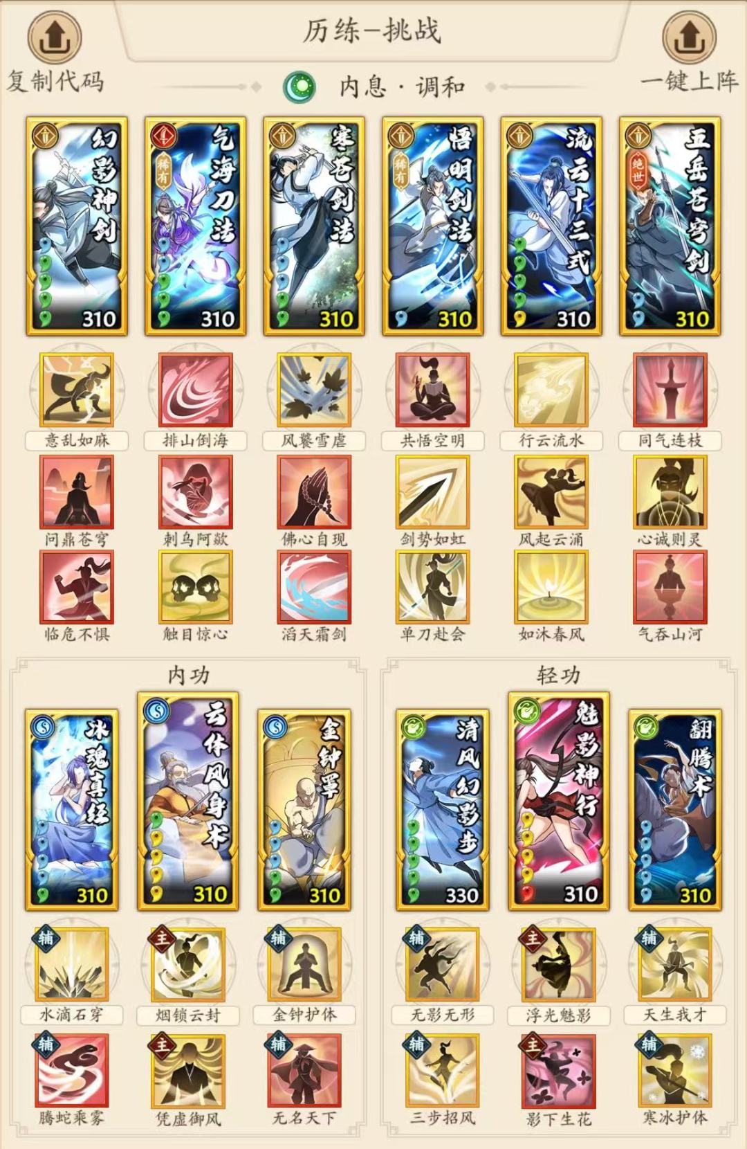 到后续就是素雪冥女等,这阶段有很多攻略都有提到必备的招式和武学了,比如雪中行,无羁,影月步等等,就不过多赘述了,分享一套自己搭的配招和大家交流学习下