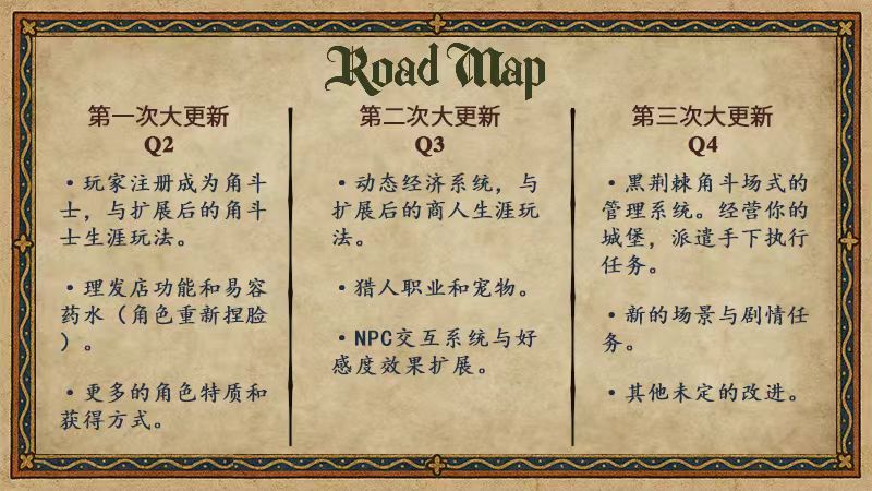 以下是开发路线图(RoadMap)的具体内容。请注意,图上所描述的只是确定的部分,并不是我们将为大家呈现的全部内容。更多具体内容会随着时间以开发者日志的形式向大家公布: