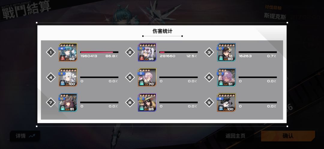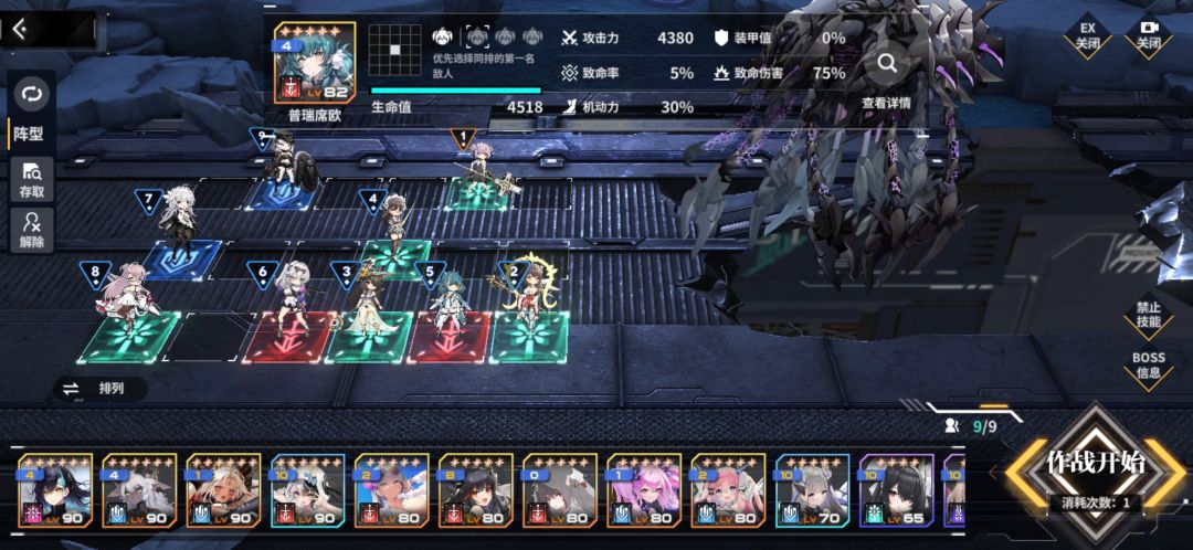 主cr4普瑞,我也是才拉的,用了7管体力刷石头搞了觉醒,攻击只有4000,感觉还能低,我一下18w,加个皇女,一轮22w,感觉还能低,可能我盾比较能抗,法尔和珍宿血越多越好(我都2w),辅助除了多罗西和帝娜练度高一点,其他的60级差不多了,要超限,我爆伤是到了440的,能更低。说白了我就是盾练的比较好吧,能抗住就好了,防御队抄比较好(我核心一般),核心不好rank高一点也差不多
