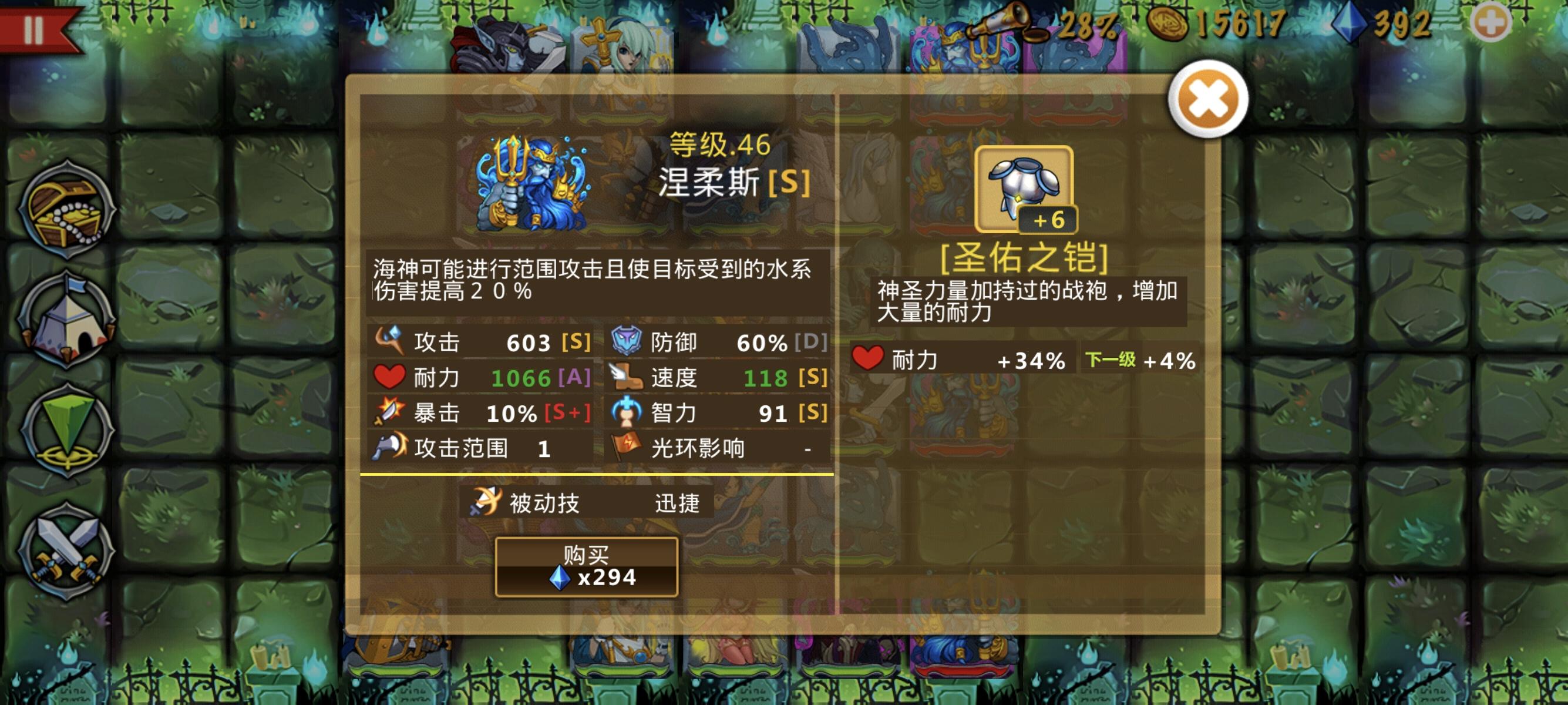 第二部就是抓海神了,靠等级压制大概推到图三中期就难推动了,要提质量,第一件事就是抓一个攻击速度s的海神,然后就是二转,然后再抓第二只和转职狐仙,效率会高很多。财富发育好后,后面的提升就很明了了。