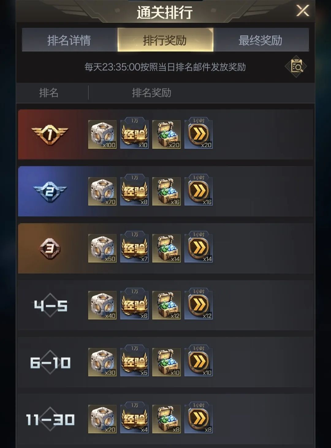 最后说一下大家关心的结算奖励问题,排行榜每日结算截止到当天23:30,并在23:35发放每日排行奖励,在最后一天活动结束时发放最终结算奖励。奖励如下: