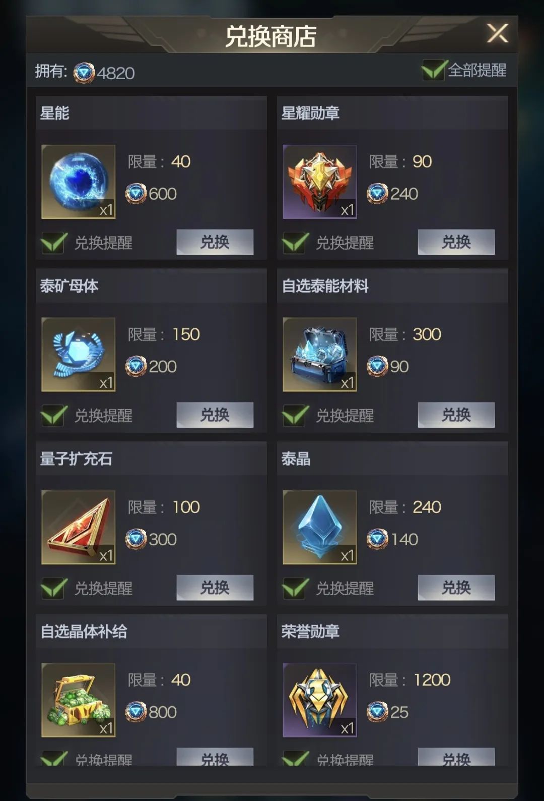 至于奖励兑换,根据自己情况兑换即可,缺啥换啥。