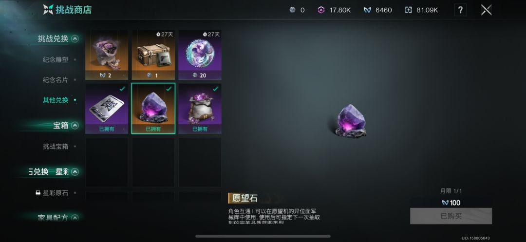 2、星愿石,可以抽自己想要的武器:(一个月一次)