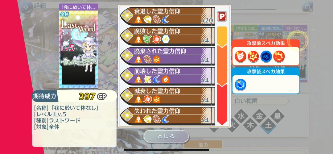 特攻:幻想乡、人类、地狱、鬼、月之都、教师、学生服、春,35段没有幻想乡特攻,