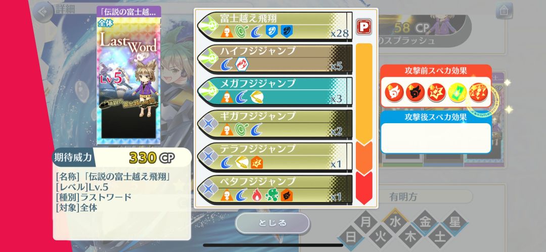全体双攻4段,会心攻击3段,