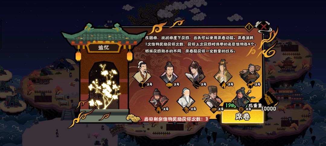 1因为在刷9名臣时候,系统结算会出bug,所以这一局会正常获得经验,但是没有碎片儿。不过也不会消耗每天三次的机会,大家可以在旁边席卷三次,能获得碎片。