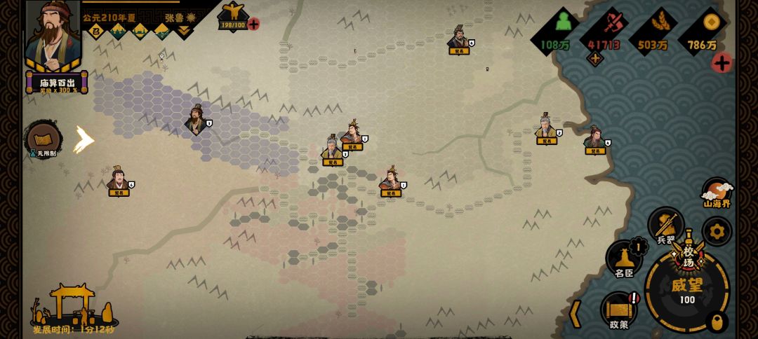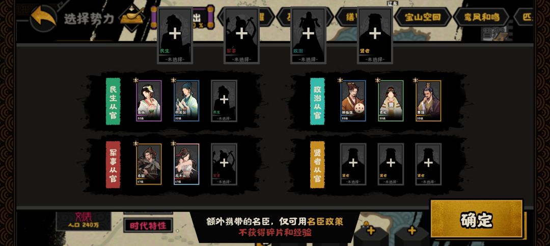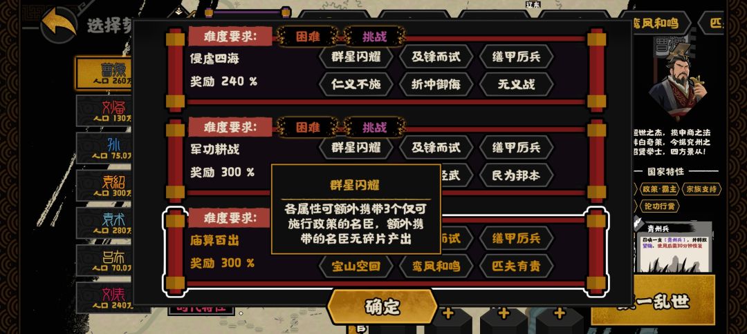 许负:每次剧情里有国家灭亡,许负技能刷新。可以招募新名臣,凑够局内3+2名臣