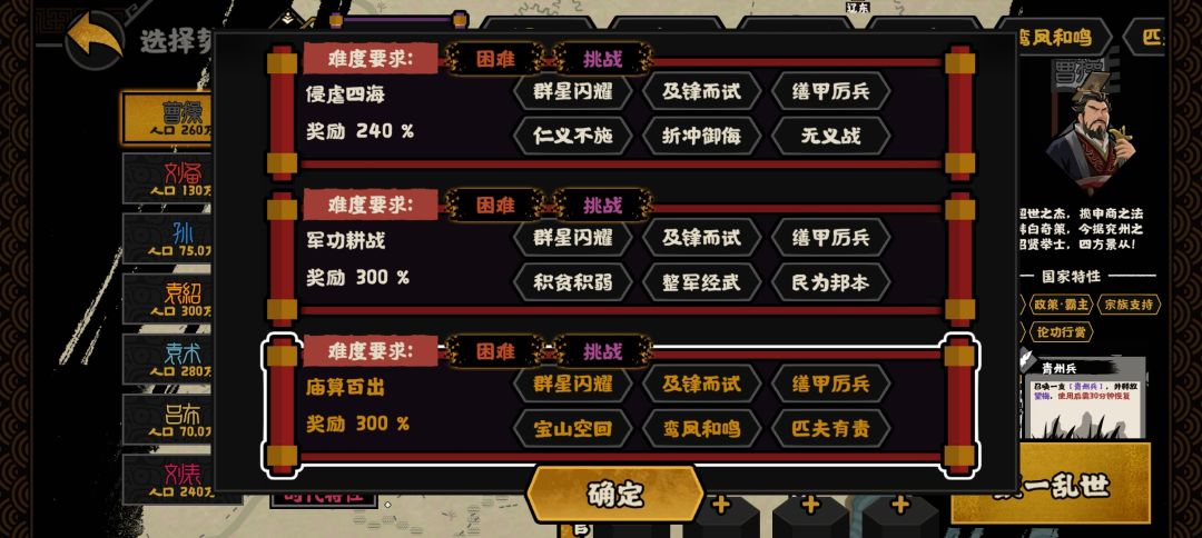 许负:每次剧情里有国家灭亡,许负技能刷新。可以招募新名臣,凑够局内3+2名臣