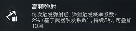 触发概率:有些关键词是概率触发,触发概率词条可以提升触发概率。如栗鸢添加一条6%弹射概率,则弹射概率变为75%*(1+6%)=79.5%,79.5%/75%=6%,实际上触发概率也是一个独立乘区,这条6%概率提升了6%的弹射整体伤害,提升甚至高于被稀释的6%弹射伤害(一般关键词伤害摇篮都会给很多)和25%弹射暴击伤害