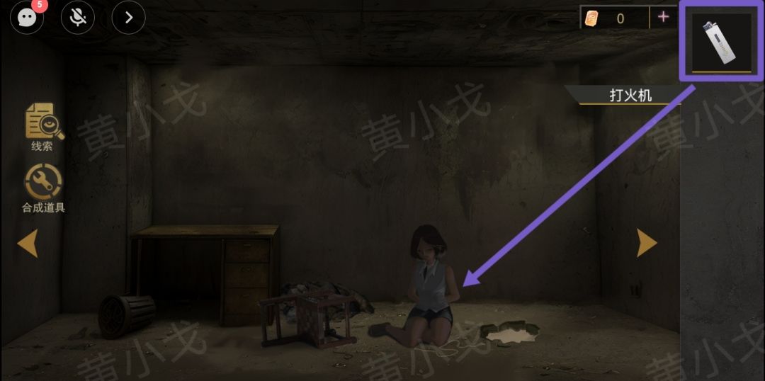 1.用【打火机】烧断绳子,恢复自由
