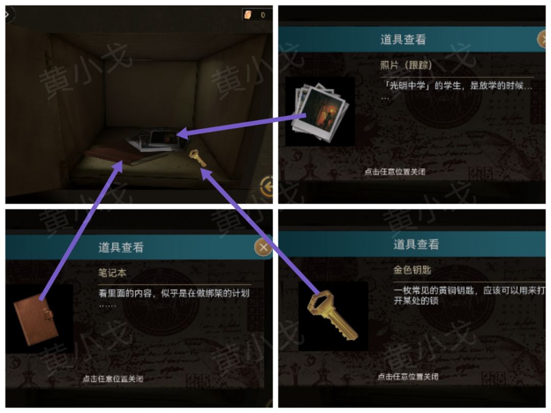 11.打开保险箱,获得【金色钥匙】、【照片(跟踪)】和【笔记本】