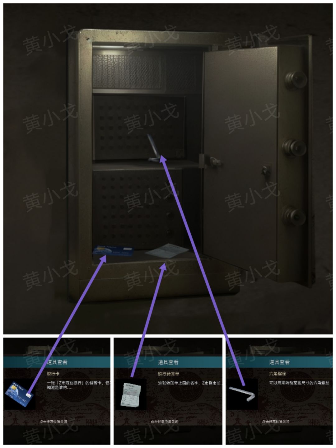 9.打开保险箱,获得【六角螺栓】、【银行转账到】和【银行卡】