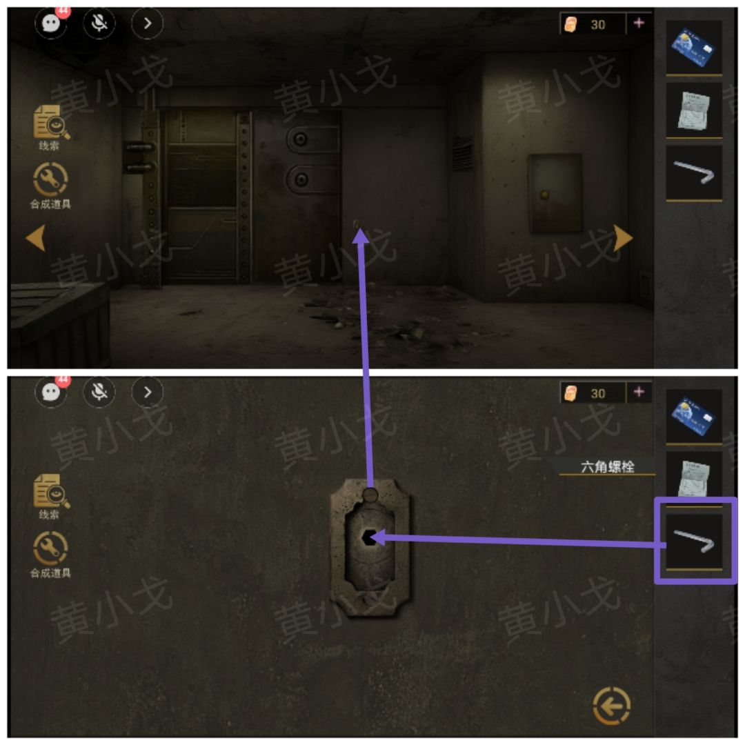 10.点击墙上的机关,插入【六角螺栓】,打开铁门