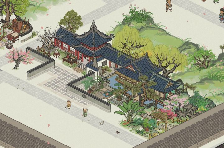 扬州府 秋千边 (凉亭雅趣+鱼戏水榭+春园小径)还有一些细节像:灌木,芭蕉,天井,瓜藤,石径