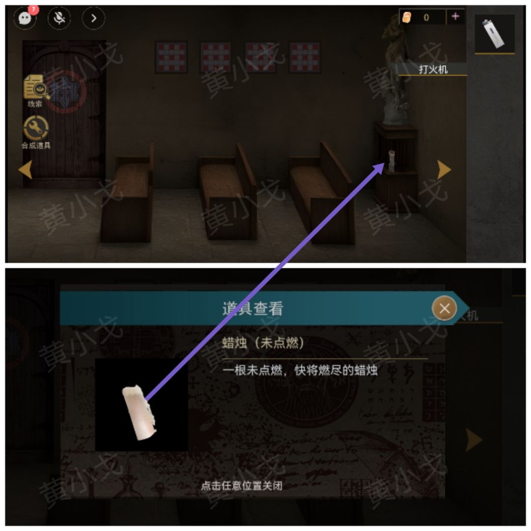 5.点击墙上的蜡烛,根据队友那边的线索,用【蜡烛(已点燃)】按照特定的顺序点燃蜡烛