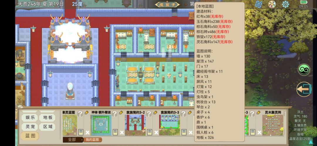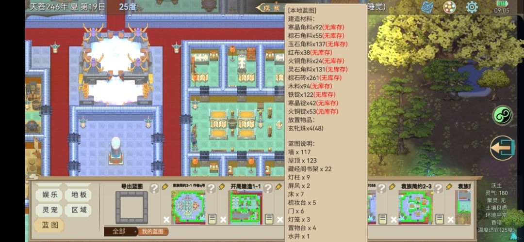 这一期蓝图主打的一个开局即可建造,除了法座需要门派等级获取,其它均在1级门派就有