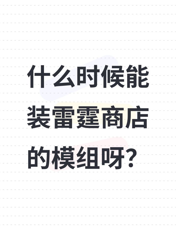 什么时候能装雷霆商店的模组呀?