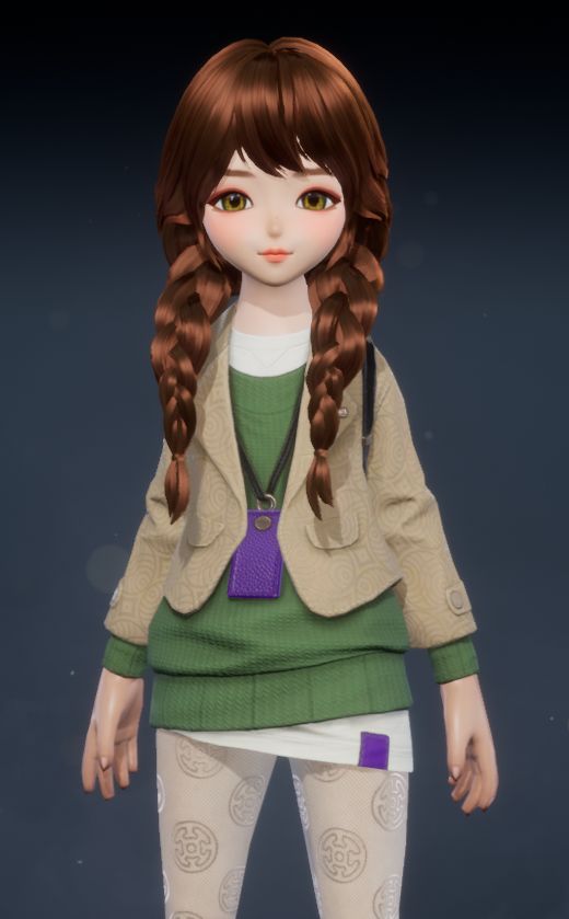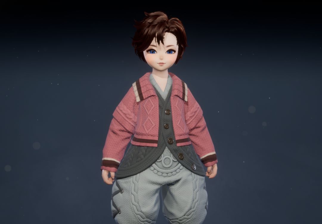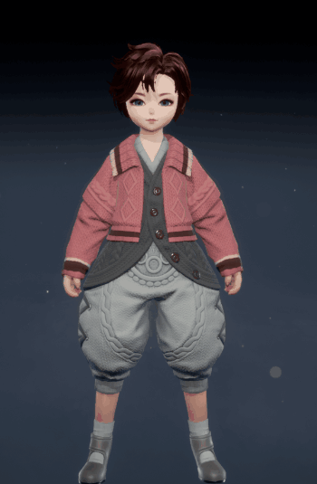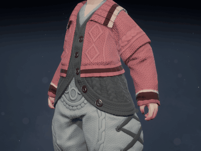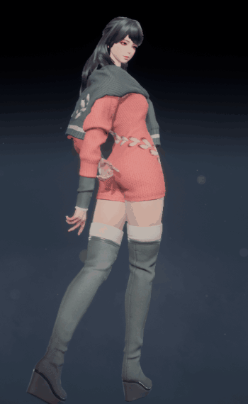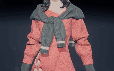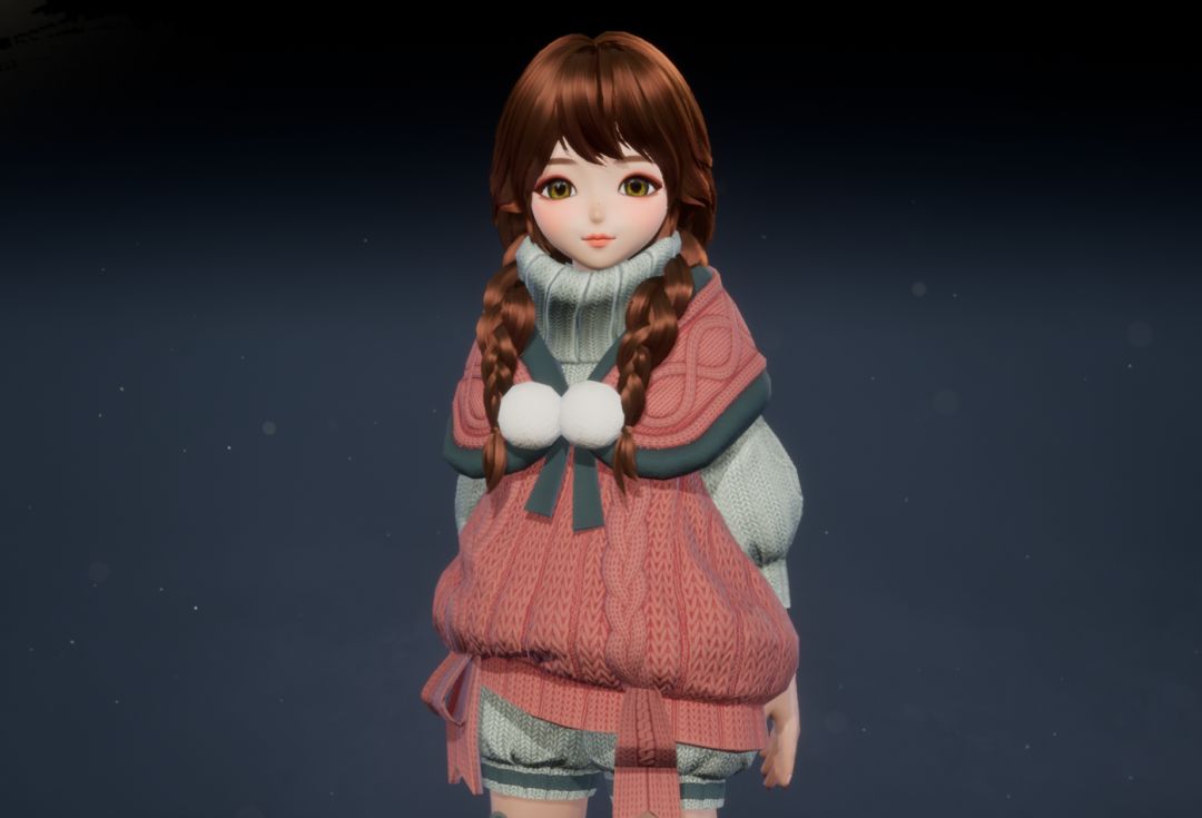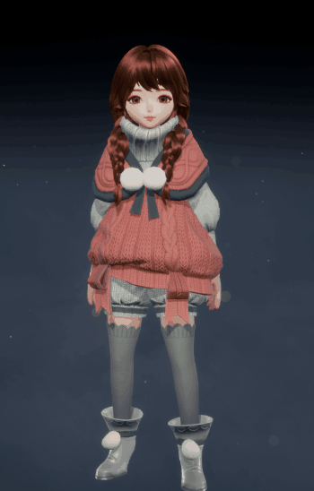 灵女款的「糖釉」更加凸显其天然的可爱气质。高领粉色内搭,外罩一件红绿色毛线蓬蓬裙外套,胸前点缀的两个白色绒球,更添几分俏皮感。下身搭配黑灰色裤袜和粉色小皮鞋,将灵女的呆萌可爱演绎到极致,让人忍不住想rua!