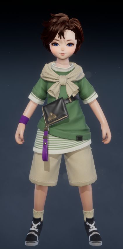 宽松白短裤配不对称腿部装饰,尽显古灵精怪,是卖萌耍酷首选!背面猫耳圆润,白外套印独特纹样,不对称腿饰活泼俏皮,尽显灵男独特个性。