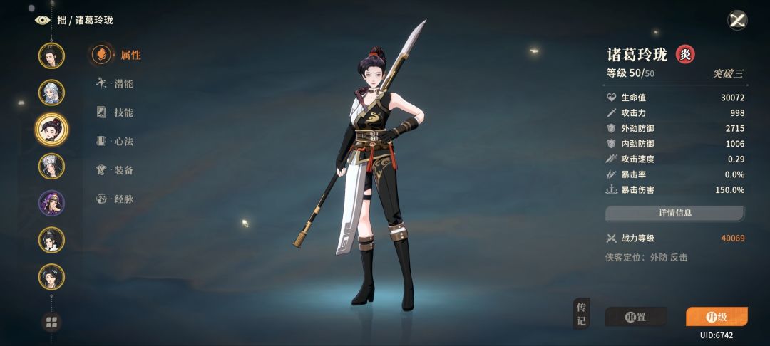 机制强,绝招无敌,前期不需要练度也可以顶很久,后期搭配经脉心法装备肉度客观
