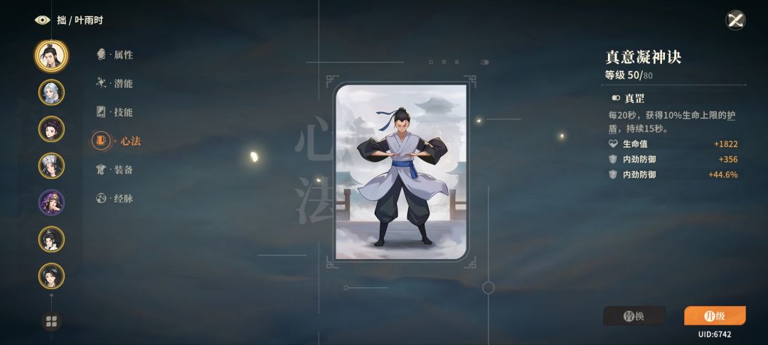 叶一星有获得护盾的效果加成(也可以通过装备洗练),护盾类心法收益高,另外还有龟息大法、峨眉临济功