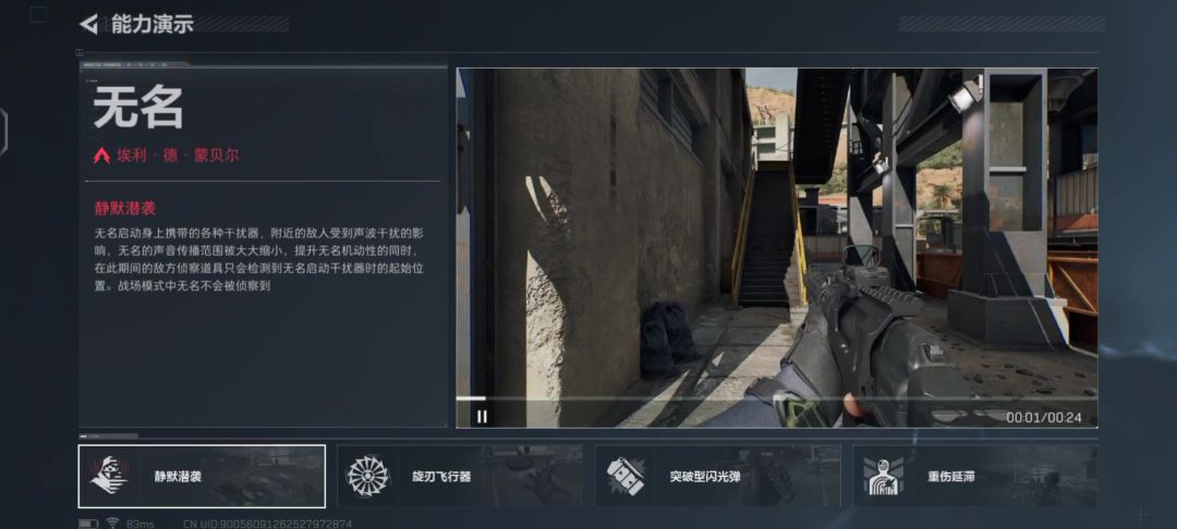 在大招期间,无名无法被骇爪大招以及露娜探测键探测到实时位置,只能探测到无名开启大招时所在的位置,但是可以被骇爪的数据飞刀给黑掉就是黑波装置会被强行中断,在战场模式中,无名在大招期间无法被任何探测手段探测到位置,但是当开启大招的无名在你的附近的话,屏幕左右两边会出现波浪以及对应的音效来提示你,需要注意四周冷却时间为90秒
