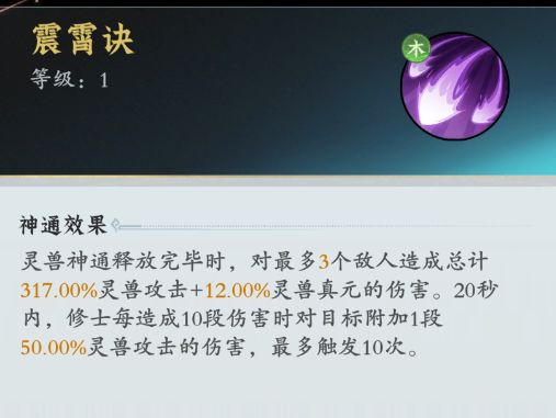 关于其他的系统培养 可以参考我上一篇攻略,鸟的技能携带震霄诀,这个技能总伤只有火修能打满,对比青峰击,火修更适合震霄诀。