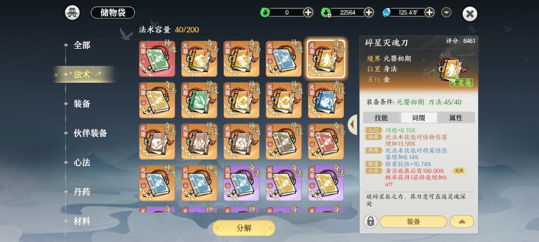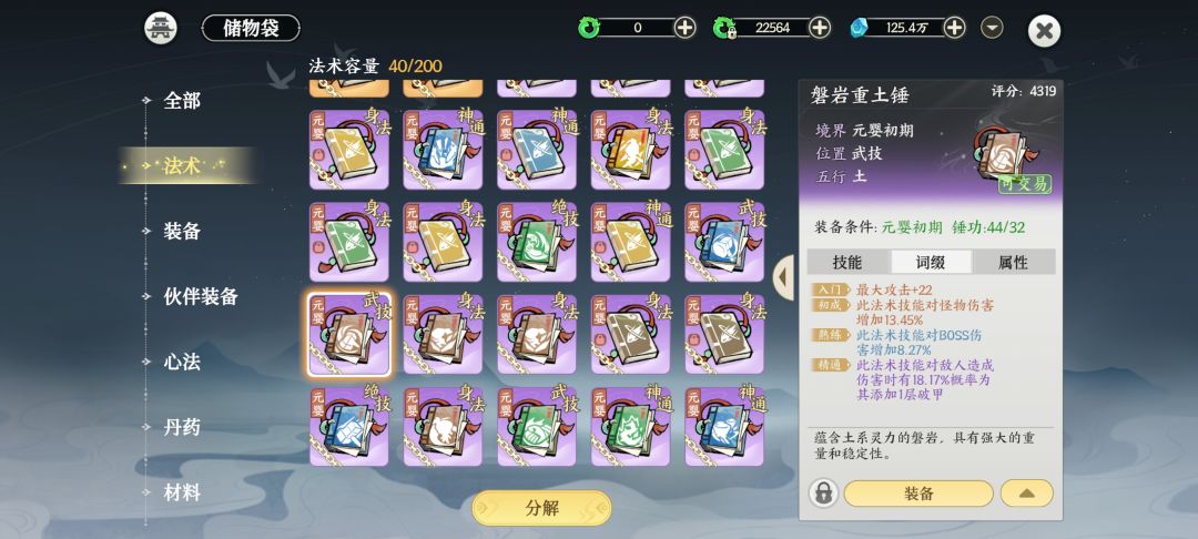 2.有用词条。会心%(玩锤必留),暴击%(稳定),身法减冷却%(剑必留),神通延长时间%,神通减冷却%,绝技加伤害%,身法概率加移速,最拉胯-对boss怪物精英%(不是稀有、完美不用留,特别好出)