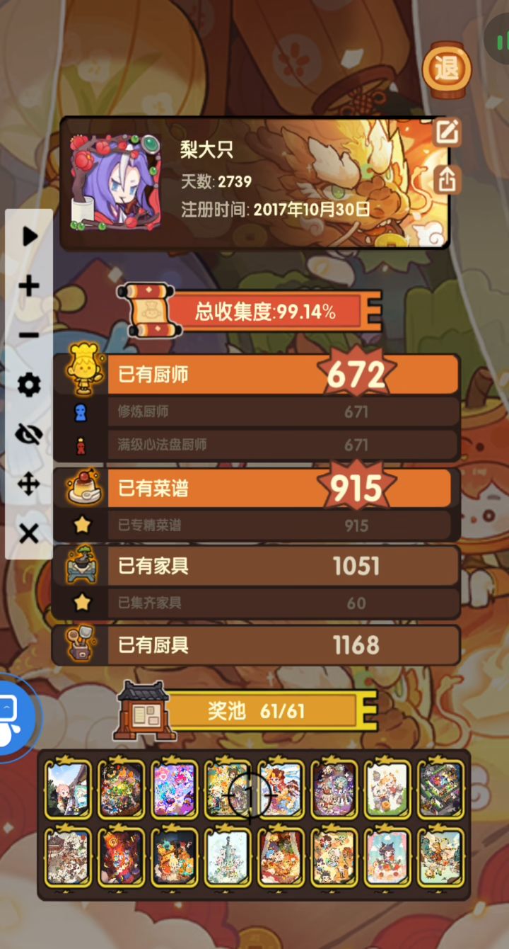目前671厨(除雍正)满级心法盘合计消耗:铜符文8045,银符文7595,金符文4680,玉片402700,金币66975万。