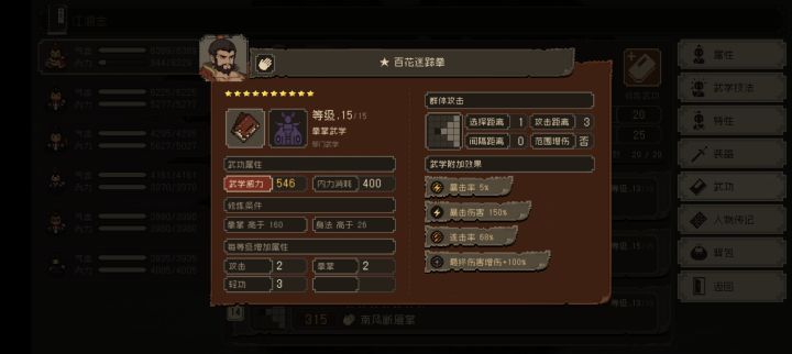 ......如果五峰剑是一个7连打+连击率功法,想必伤害在潇湘夜雨式的加成下会非常爆炸所以没有犹豫,武学突破我选择百花迷踪拳