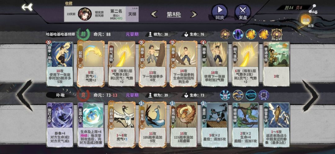 阴晴圆缺共鸣可以让我们在金丹之前拿到百分之九十五的对局先手,再加上奇数轮额外的血量以及多出来的d牌次数,有几率在九十血以上进金丹