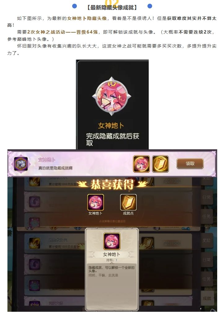 资讯丨最新隐藏成就头像出炉!女神地卜&李小龙地卜解锁条件爆料