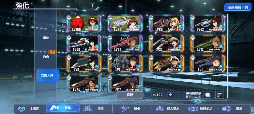 1. 养成更多的机体等于更多选择去攻略不同关卡,UR0突/SSR满突甚至是SP机也能通关但对于机体养成度更加苛刻。(如技能等级和机师基本要满级)
