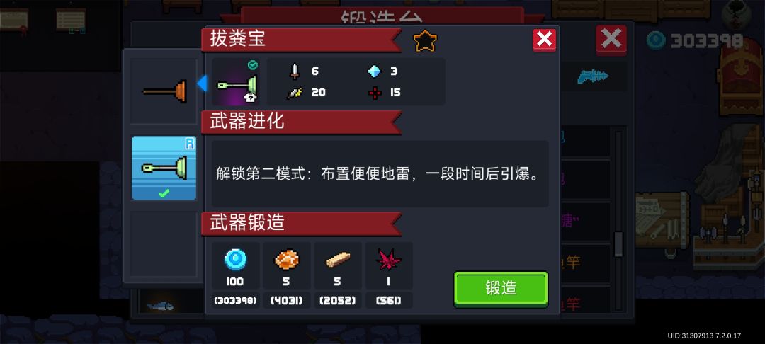 武器升级给了一个布置粑粑地雷的效果,粑粑地雷会有普通粑粑和黄金粑粑(概率掉落金币)的区别。