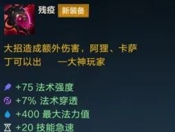 综上,在单人路位置,隆哥就给大家推荐亡灵战神 赛恩。人气出装推荐如下: