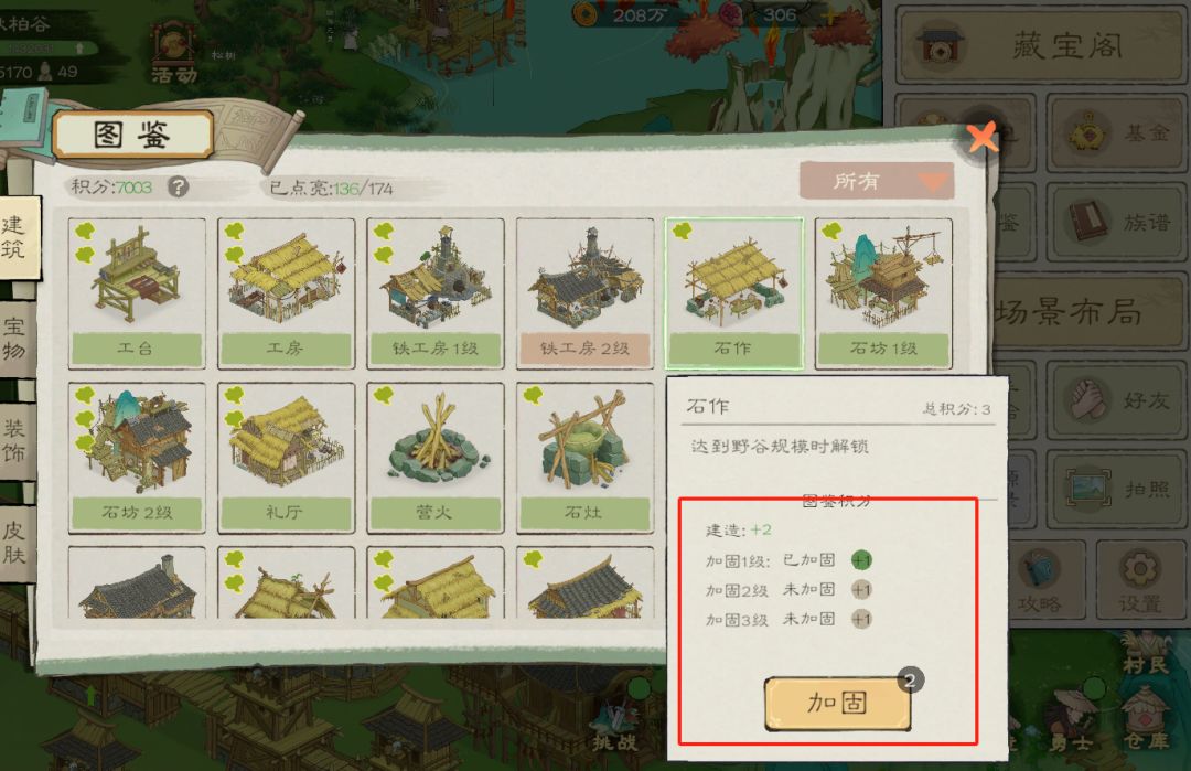 那我问你,你开不开图鉴,不开图鉴的话后期也要在图鉴里补(是的,图鉴里可以直接补没加固过的建筑,消耗同等材料,所以不用担心之前的低级建筑忘了加固)