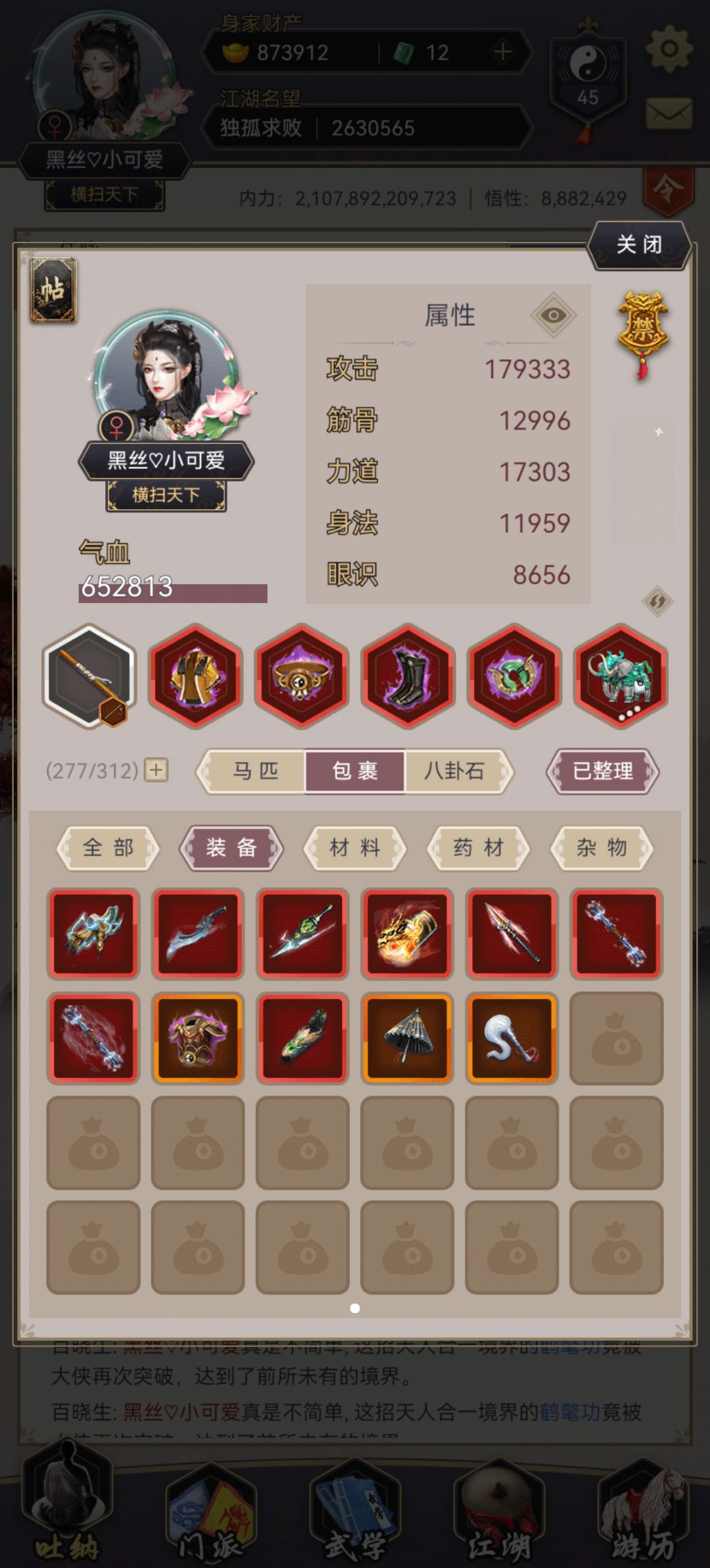 以上打太极阁伤害也能直观的看出棍的强度,在我用庆余堂随手买的棍打太极阁的时候伤害有2e多,而用辛苦几个月培养的三阶腿神兵打出的伤害只有900w不到。