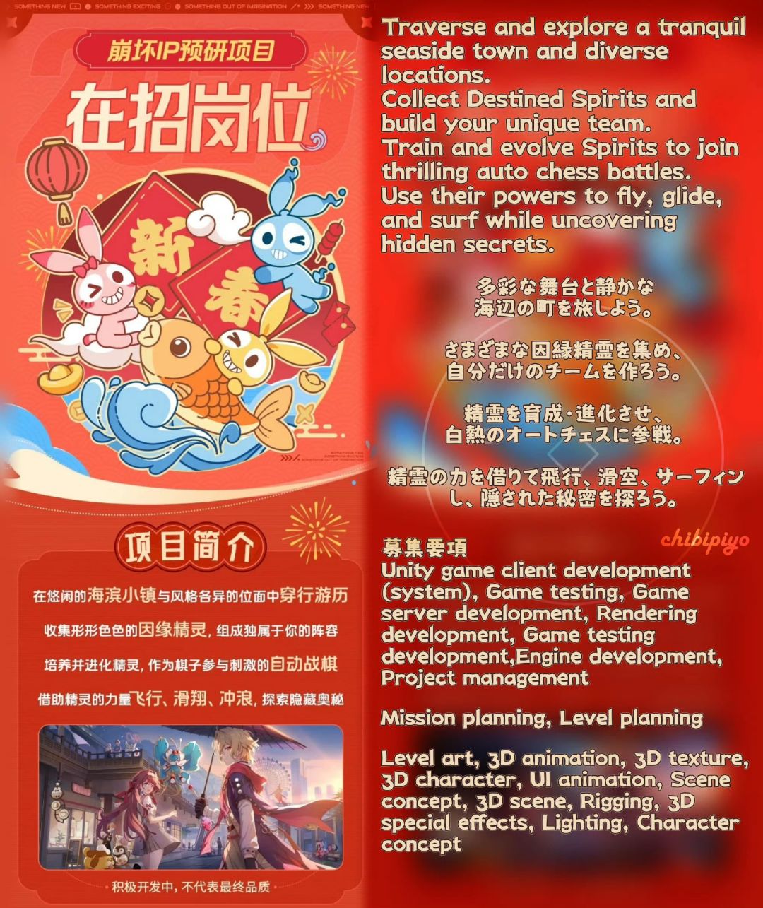 🐝再结合miHoYo之前放出的崩坏iP预研招聘项目招聘中对项目的介绍,此次曝光的这款游戏很大概率就是《崩坏:因缘精灵》,大家对miHoYo的这款新游感兴趣的话,不妨先预约游戏,等待游戏后续消息