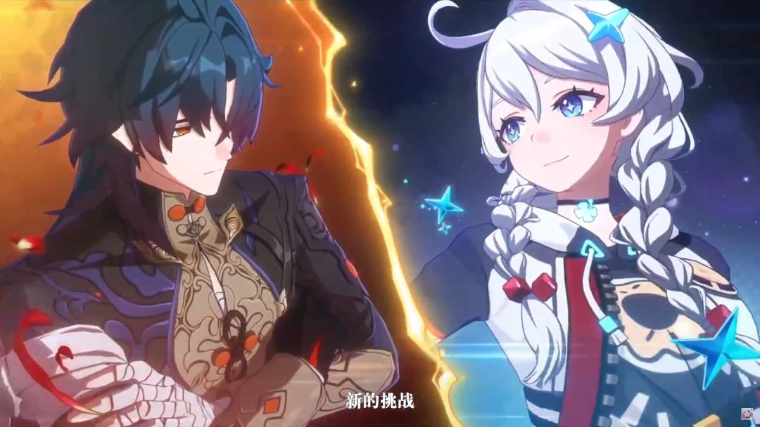 在这次预告中,我们可以看到崩3琪亚娜自称来到了一个新的位面,在这个位面中她遇到了星铁角色刃,除此之外还有两位可爱精灵对战的画面。