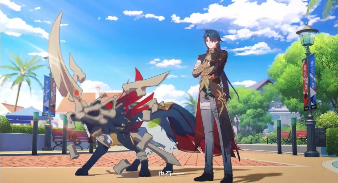 游戏的玩法元素也终于正式亮相,琪亚娜和刃分别携带了一只战斗宠物。