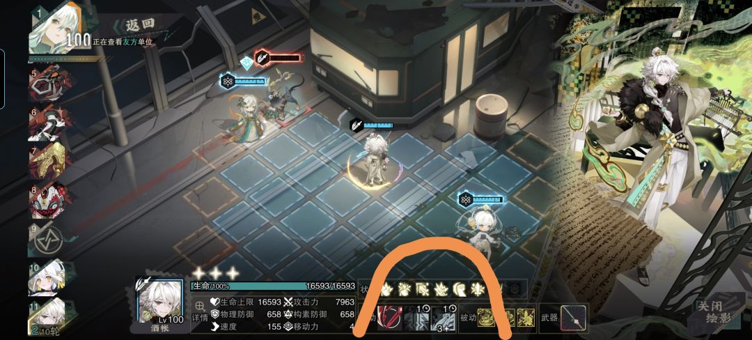 酒帐二轮打完之后,就需要高记来给建CD,保证每回合循环有技能。