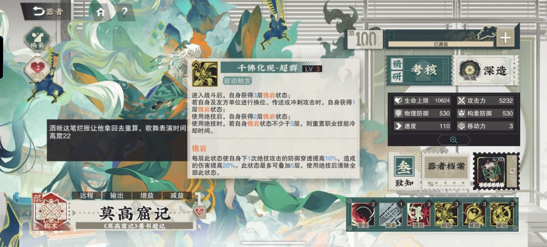 省流重点:一轮酒帐穿进怪堆自己叠buff三层,高记跟上放技能(大招内最少2怪),酒帐二轮后每回合二动,高记每回合有大有职业技(深造点穿透7300伤害最大化)。