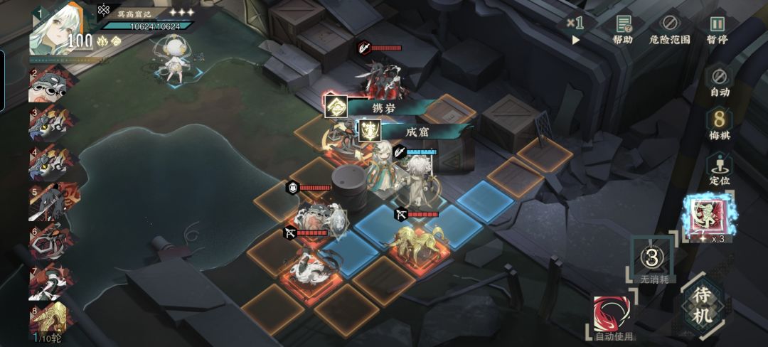 三格内怪死亡多回一能量,高记大招往怪多地方放(最少两个),如果自己能每轮大死两个怪就能保证循环。大死一个就需要队友帮忙清理一个,一个大不死就需要队友清理三个。
