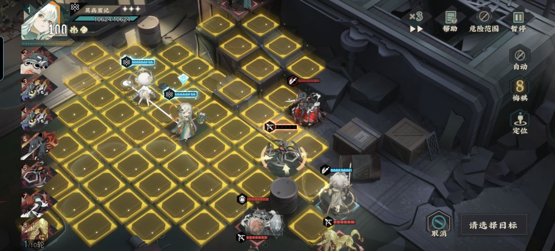 高记职业技非常远,有五格。而且不必非得换人,也可以换到其他角色附近一格来上buff。保证站位。